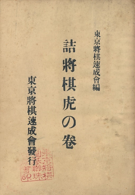 詰將棋虎の巻編者:荻野龍石発行所:東京將棋聯珠圍碁速成會 発行日:昭和3年4月20日 発行 発行日:昭和4年9月1日 8版発行 丁数:10 定価:50銭 |