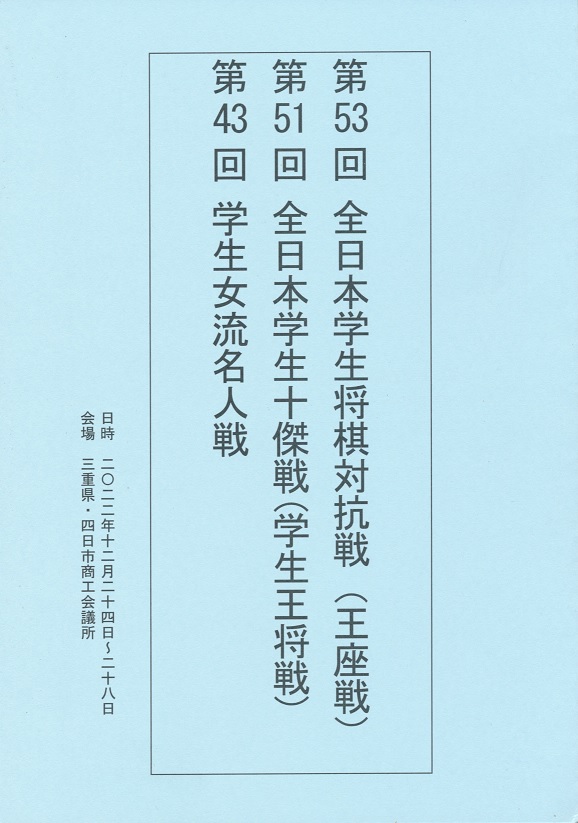 第53回全日本学生将棋対抗戦(王座戦) 第51回全日本学生十傑戦(学生王将戦) 第43回学生女流名人戦